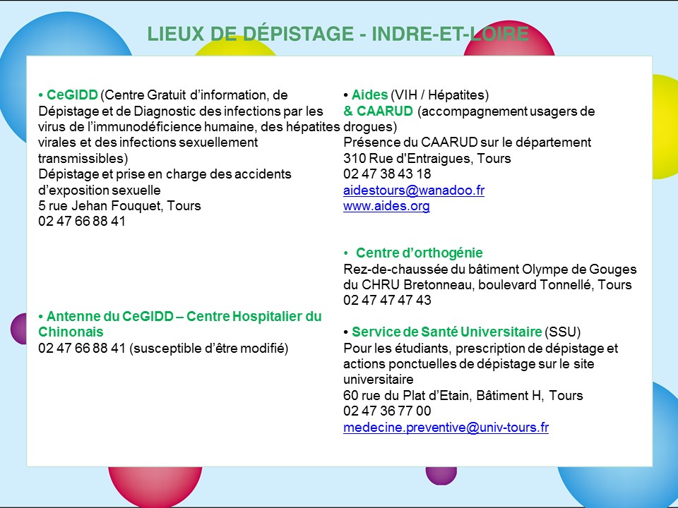 Lieux de dépistage en Indre et Loire.